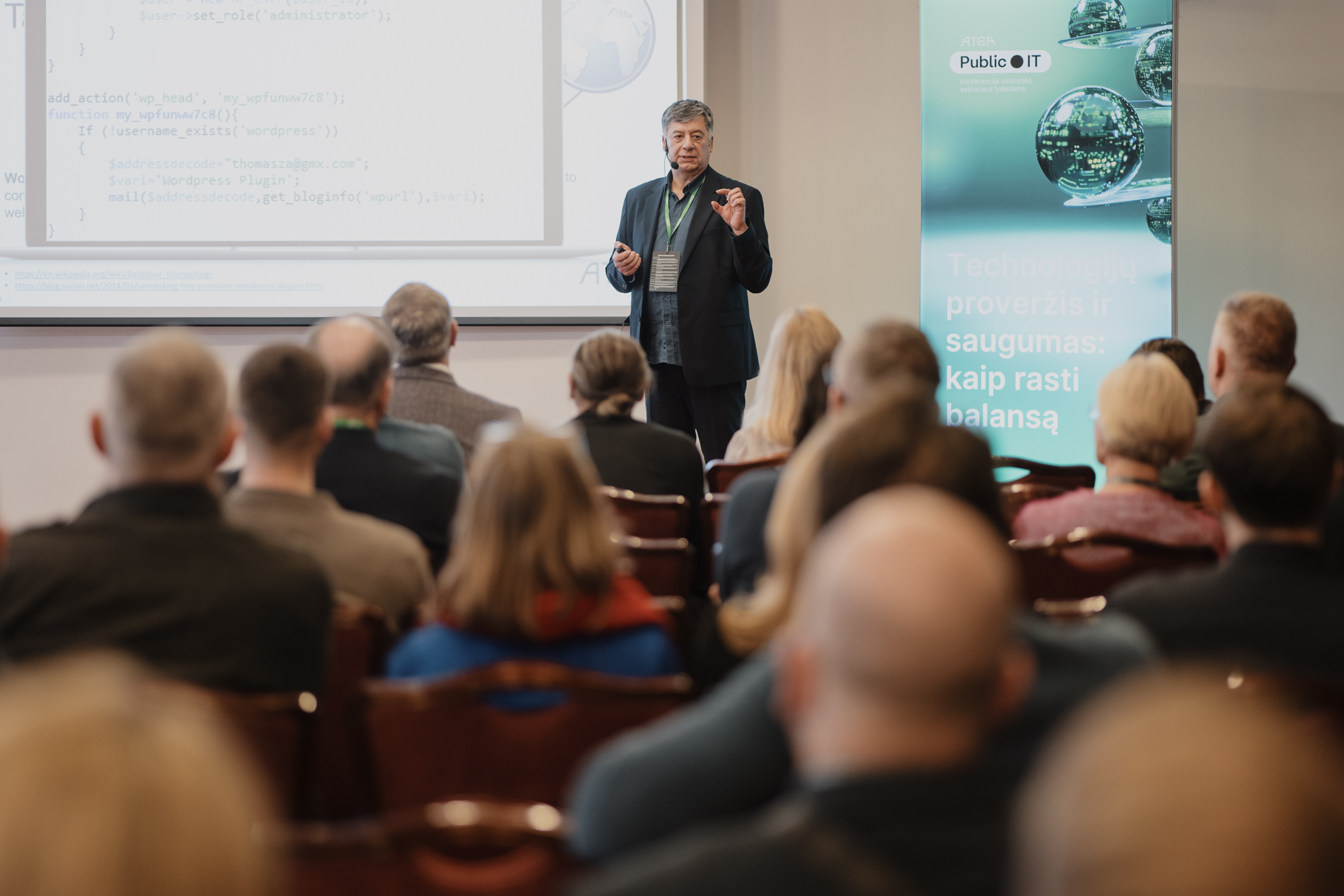 Renginyje išgirdome saugumo ekspertų įžvalgų apie nuolatinės stebėsenos, rizikų vertinimo ir kontrolės priemonių būtinybę siekiant suvaldyti grėsmes ar įvykusių incidentų žalos mastą. Akcentavome, kaip svarbu nepamiršti žmonių – vienos pažeidžiamiausių saugumo grandžių, didinant jų atsparumą, ugdant sąmoningumą, užtikrinant bazinius įrankius. Natūralu, kad iššūkiams įveikti ne visada pakanka vidinių organizacijos resursų, tokiu atveju svarbų vaidmenį atlieka ir atsakomybę neša tiekėjas: aptarėme, ką svarbu apgalvoti jį renkantis. IT ekspertai dalinosi, kaip apsaugoti organizacijos sistemas nuo „back doors“, taip pat, kaip saugiai padidinti procesų efektyvumą naudojant dirbtinio intelekto įrankius.